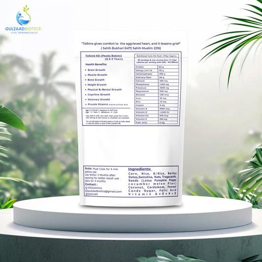 Talbina-KD can be mixed with warm milk or water to make a smooth porridge. You can also add honey or dates for enhanced flavor and nutrition.